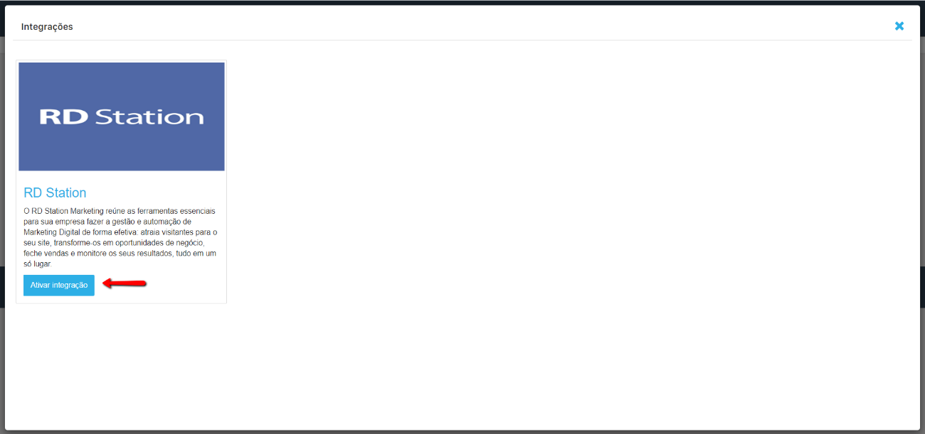 - Feito isso, você será direcionado para uma tela semelhante ao exemplo abaixo. Clique em Ativar integração: