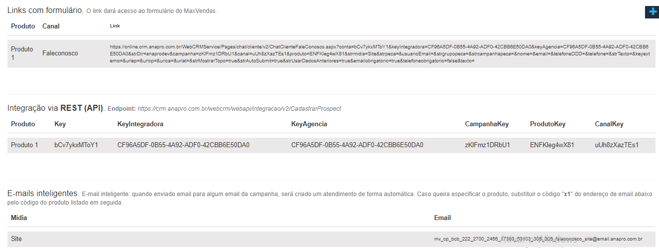 - Após atualizar serão apresentados os parâmetros de acordo com os três métodos de integração, link, REST (POST) e E-mail, os quais serão utilizados de acordo com o método que optar por utilizar em sua integração.