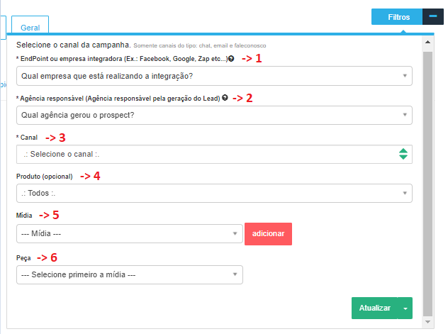 - Na tela de Integração serão apresentados os filtros abaixo: