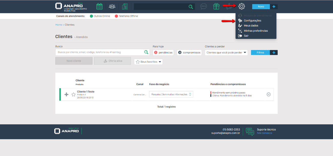 Neste tutorial iremos lhe ensinar como extrair os parâmetros do ANAPRO CRM para que consiga configurar sua integração.