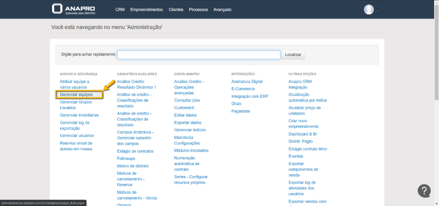 Neste artigo vamos aprender como Autorizar Empreendimentos para uma determinada equipe dentro do ANAPRO Vendas.