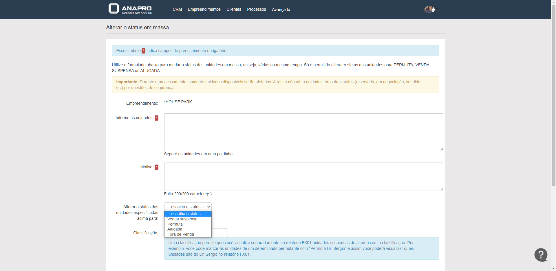 Neste artigo, iremos falar sobre como suspender venda de unidades.