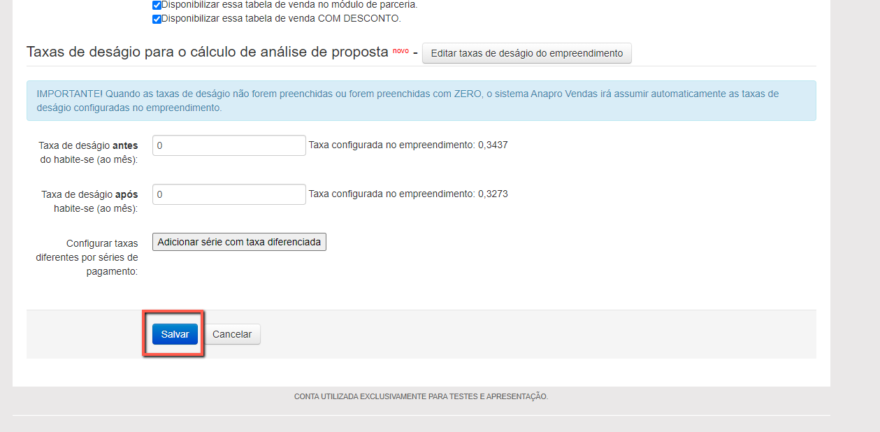 Após a alteração é necessário clicar em "Salvar" no final da página.
