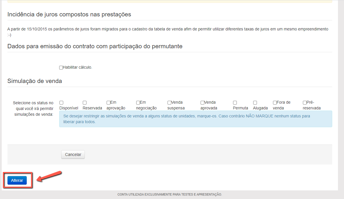 Após a alteração, deslize até o final da página e clique em "Alterar".
