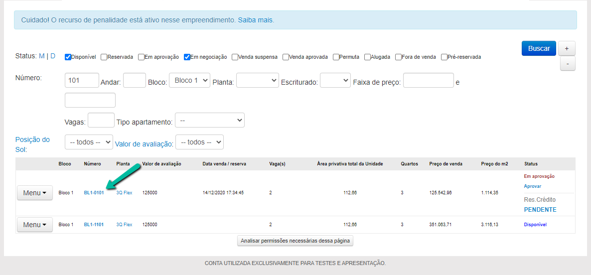 Lembrando que os números das unidades precisam ser exatamente iguais aos da consulta de unidades.