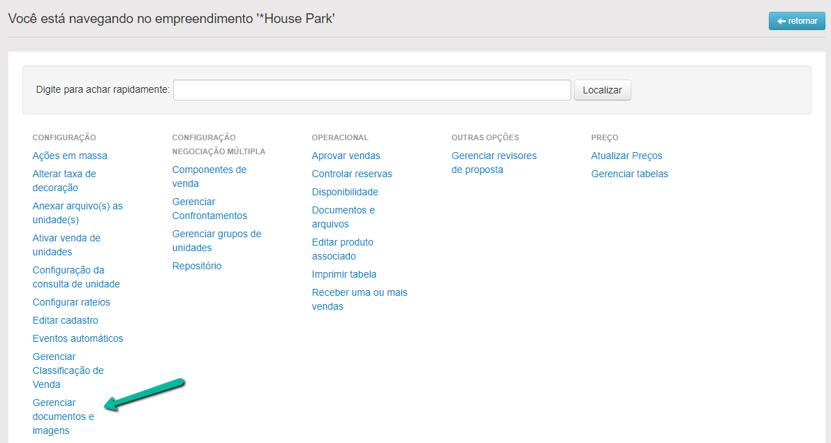 Para que os anexos apareçam na tela acima, entre nas Outras opções do empreendimento > Gerenciar documentos e imagens.