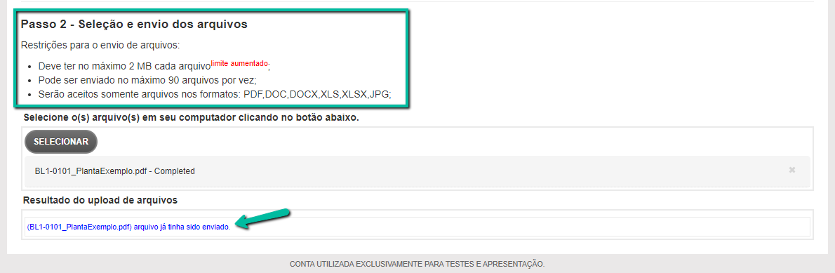 Não se esqueça também de que não são todos os tipos e tamanhos de documentos que o sistema aceita, apenas os informados abaixo, e é possível fazer o upload de até 90 arquivos por vez.