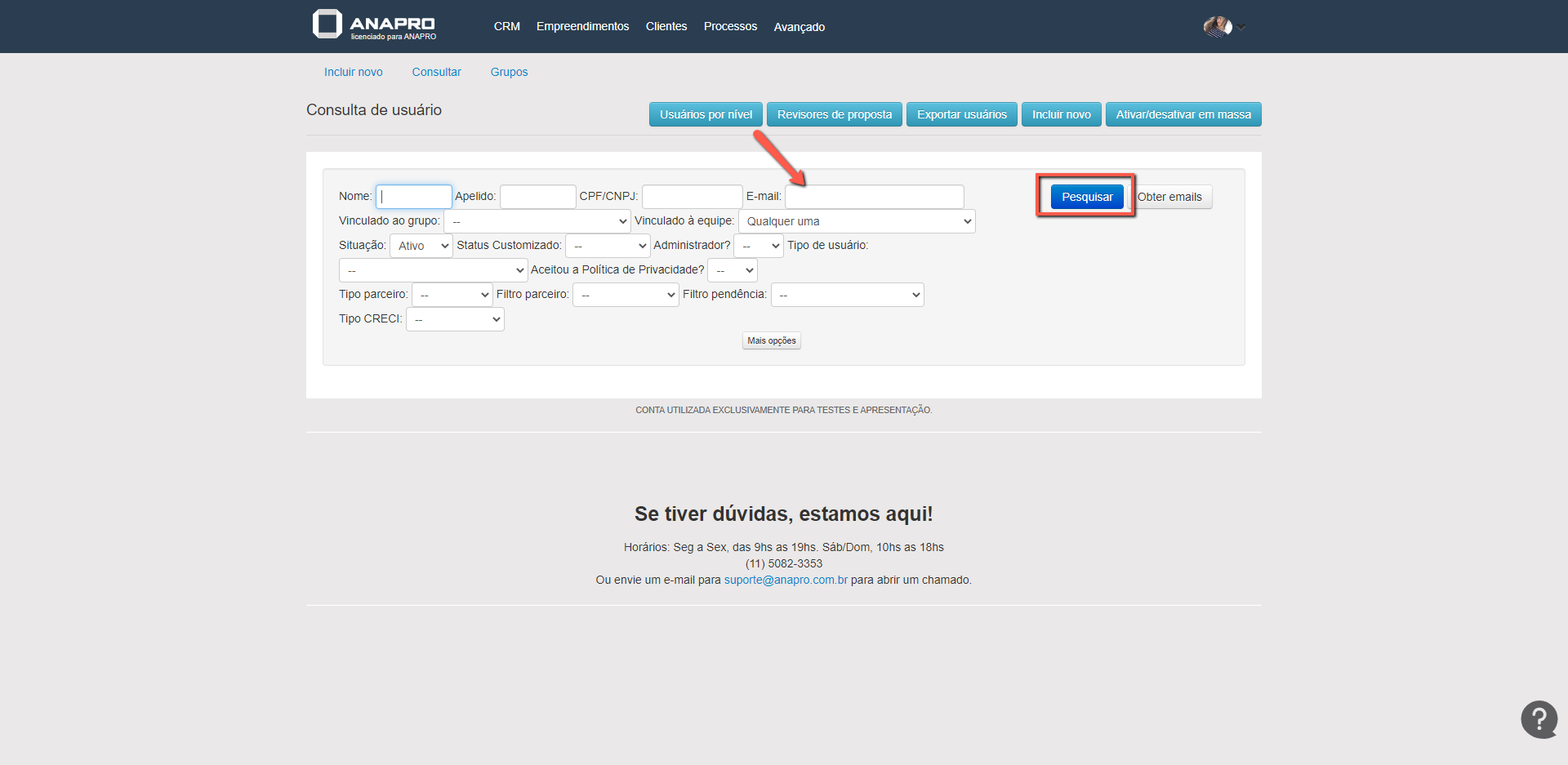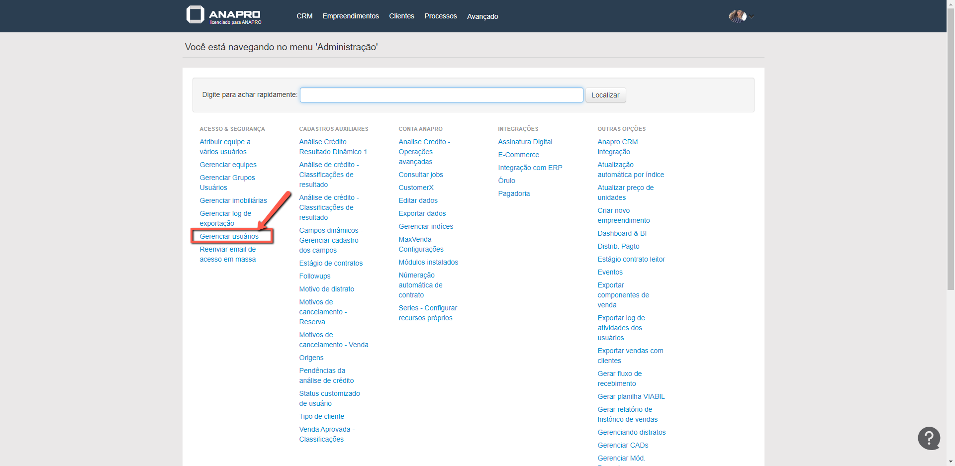Iremos ser direcionados a tela abaixo, onde iremos localizar o usuário que queremos suspender.