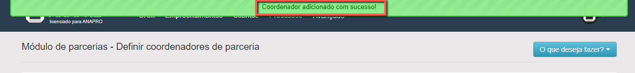 Pronto, coordenador de parcerias definido com sucesso!