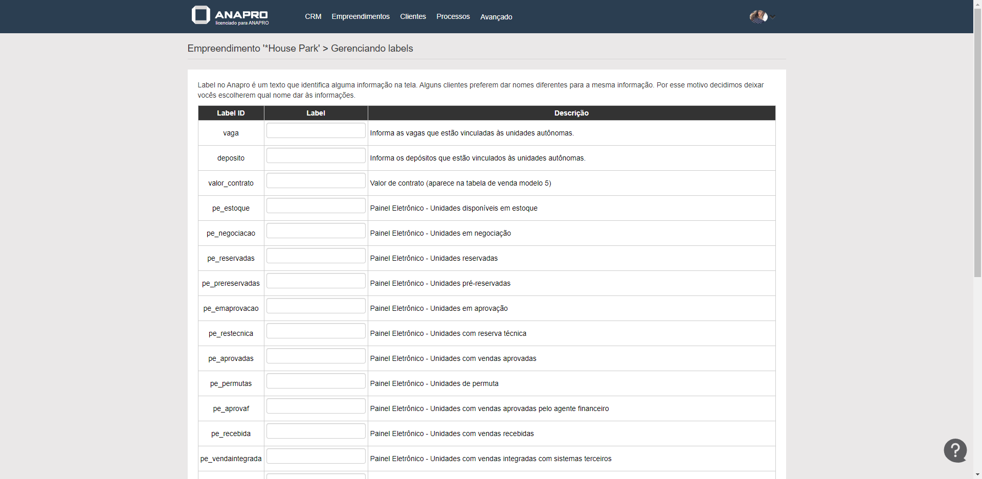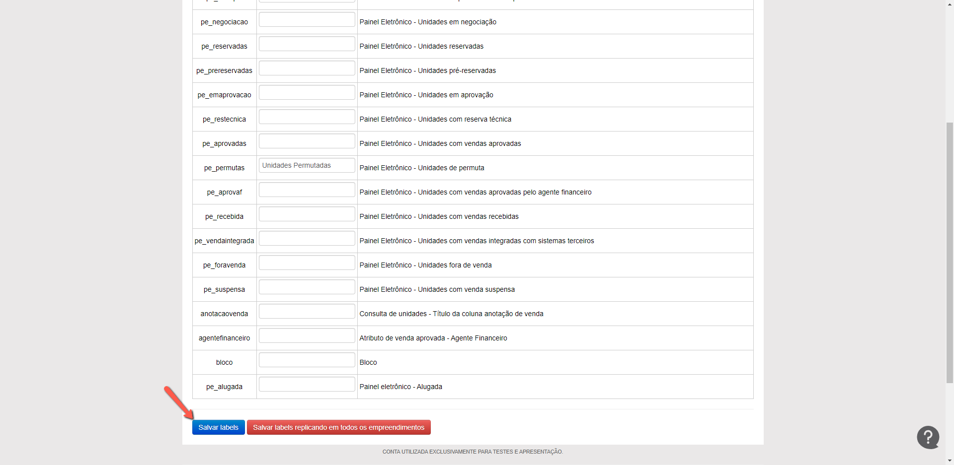 Após definir as novas nomenclaturas, basta clicar em "Salvar labels".