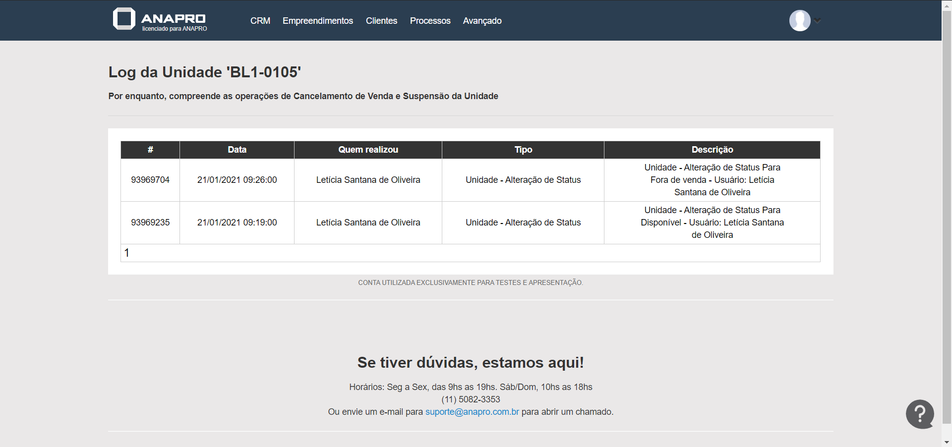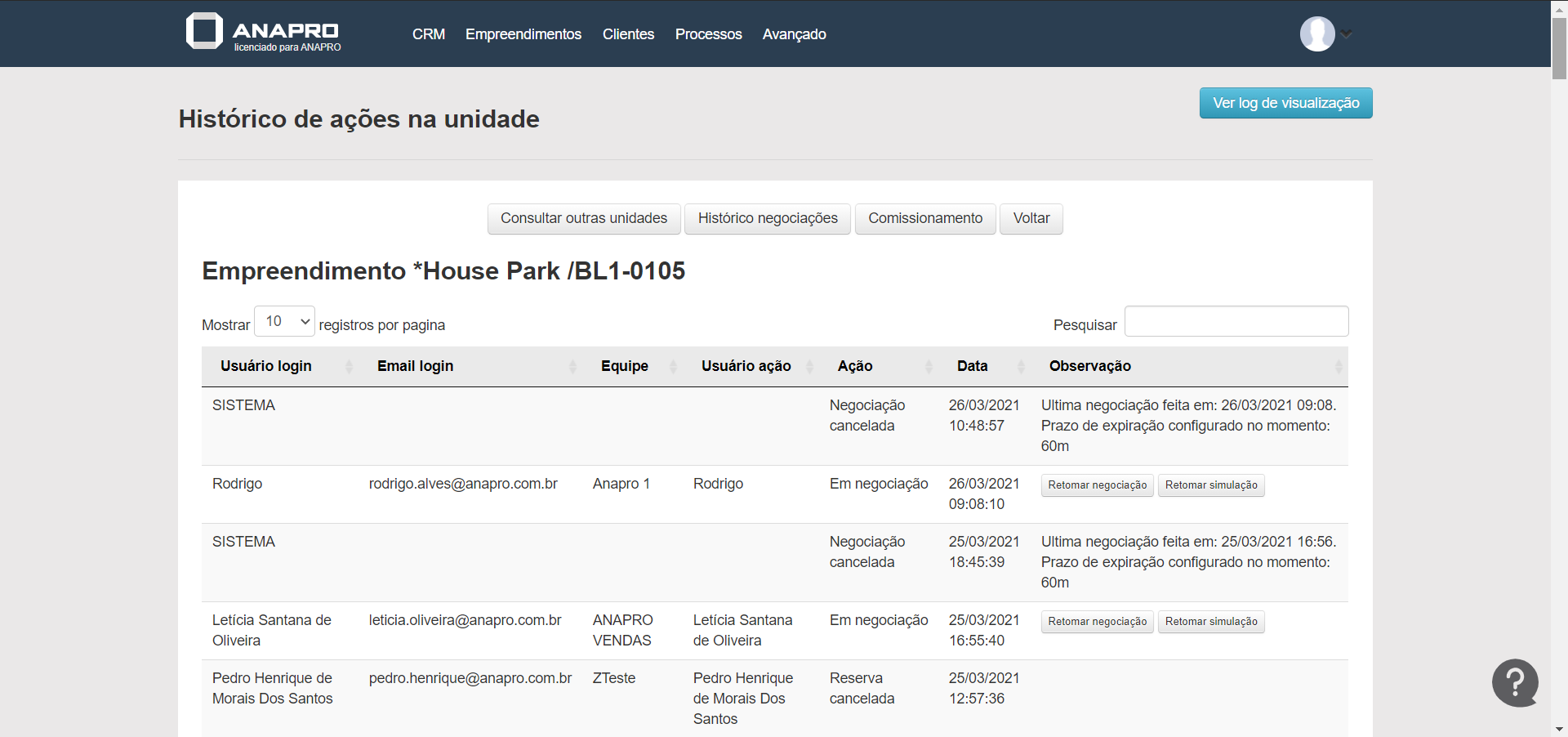 Ao clicar em LOG ele irá trazer a seguinte tela.