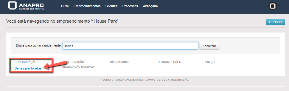 Após clicar neste menu, você irá procurar por "Séries pré-fixadas".