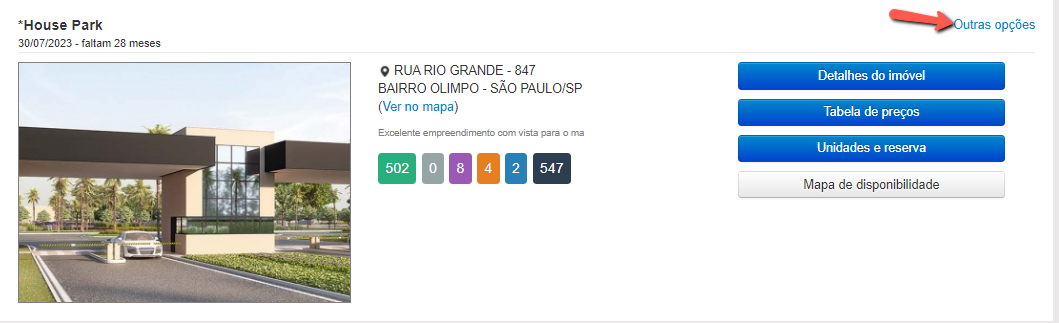 Para dar início, clique no menu de "Outras opções" do empreendimento desejado: