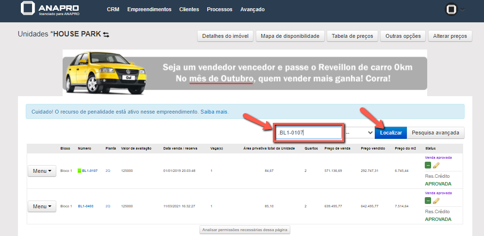 Após fazer este caminho, você irá localizar a unidade no sistema, ou localizar a mesma clicando no menu de painel eletrônico que permite você localizar as unidades em determinado status.