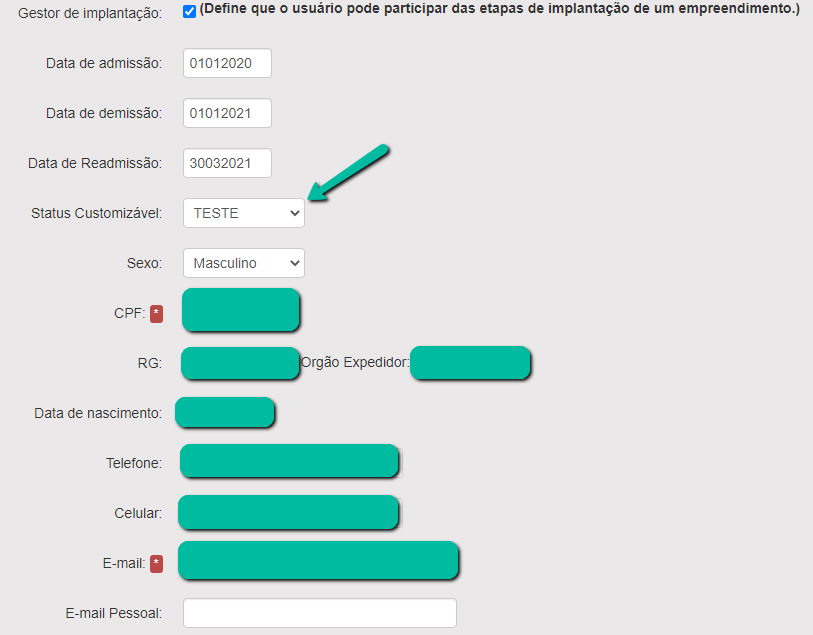Você poderá dentro do cadastro de cada usuário alterar a informação e se preciso consultar em relatórios de usuários também.