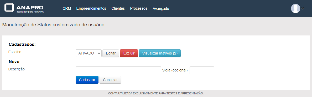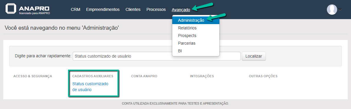 Para isso, acesse Avançado > Administração > Status Customizado de Usuário.