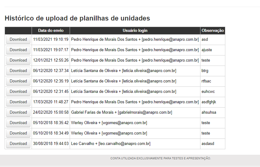 Quando a importação for finalizada, aparecerá no histórico conforme abaixo.