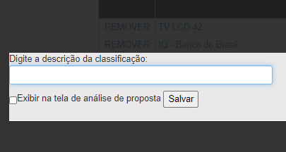 Digite o nome e escolha se esta aparecerá na tela de análise de proposta como nos exemplos abaixo.