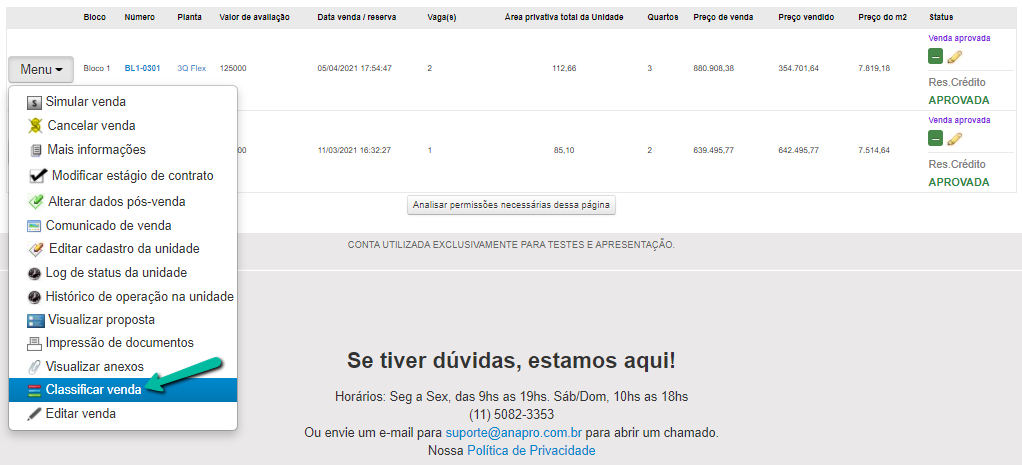 Neste artigo iremos ensinar como adicionar classificações de venda para unidades com o status de aprovadas.