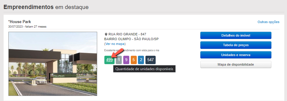 Para isso, clique no painel eletrônico verde para filtrar as unidades disponíveis para venda.