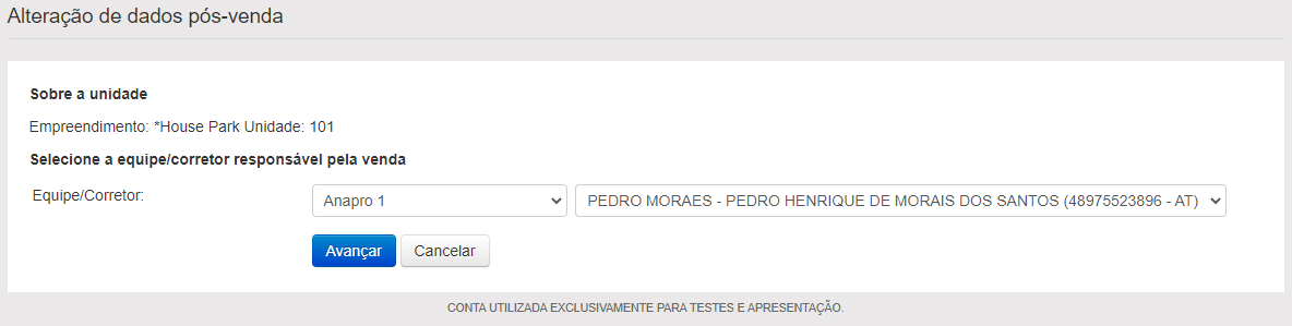 Pela opção, inicialmente é possível alterar o responsável pela venda.
