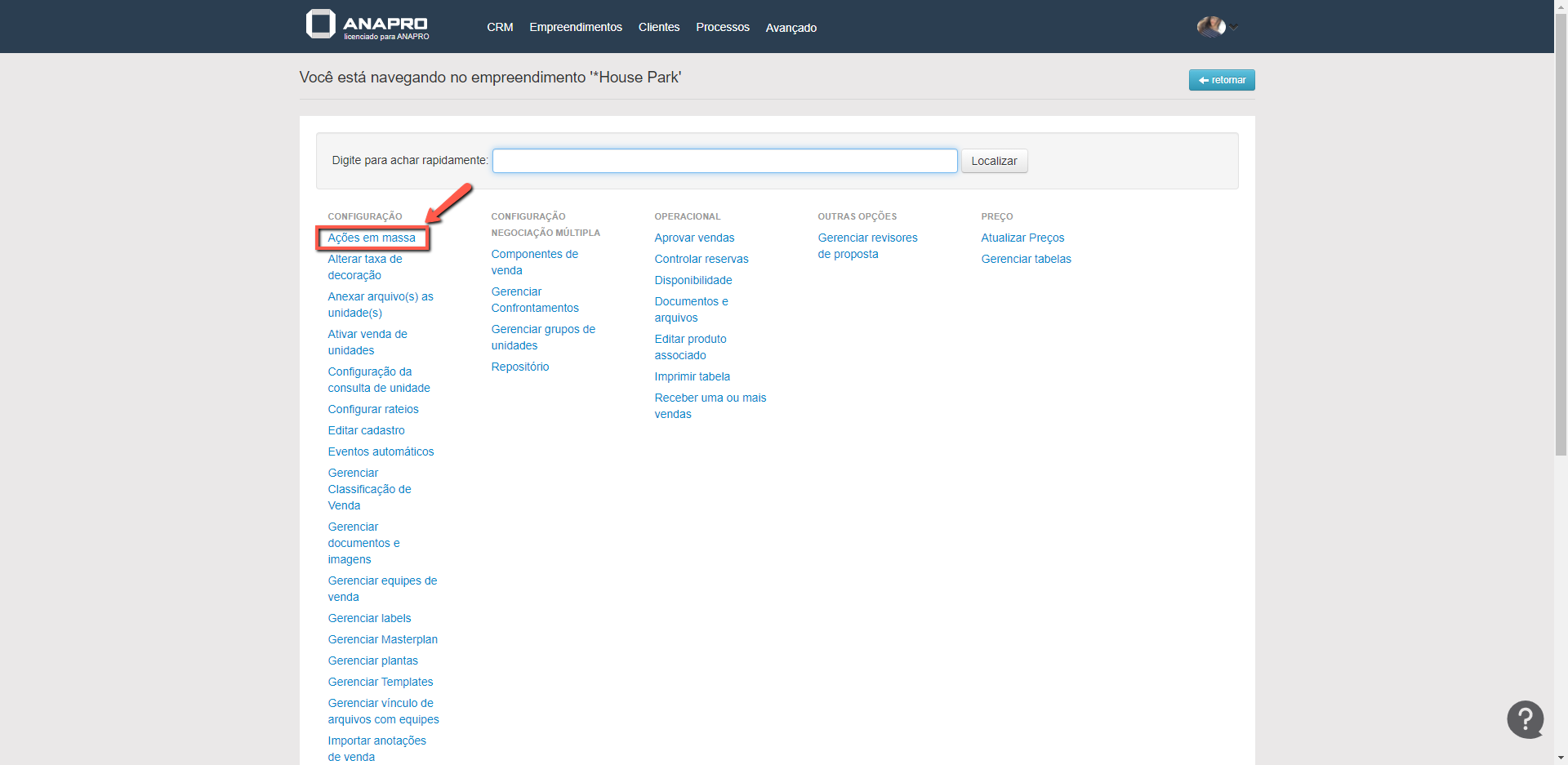 Neste artigo, iremos falar sobre como efetuar ações em massa, em um empreendimento. Pode ser utilizado para escriturar vendas, liberar unidades, entre outras ações.