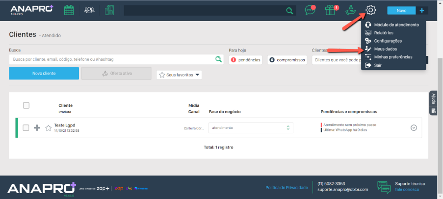 Primeiro, clique na engrenagem e selecione "Meus dados".