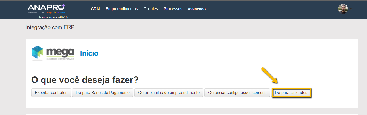 3 - Feito isso, voltaremos para o painel de funções da integração no anapro e iremos clicar em "De-para Unidades" e irá segui a sequência de prints abaixo.