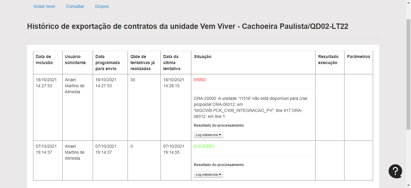 3 - Irá abrir uma tela que vai processar a exportação, quando ela concluir o processamento, o correto é aparecer "SUCESSO" porém se der algum erro ele vai gerar uma descrição do erro e um log. Segue print abaixo.