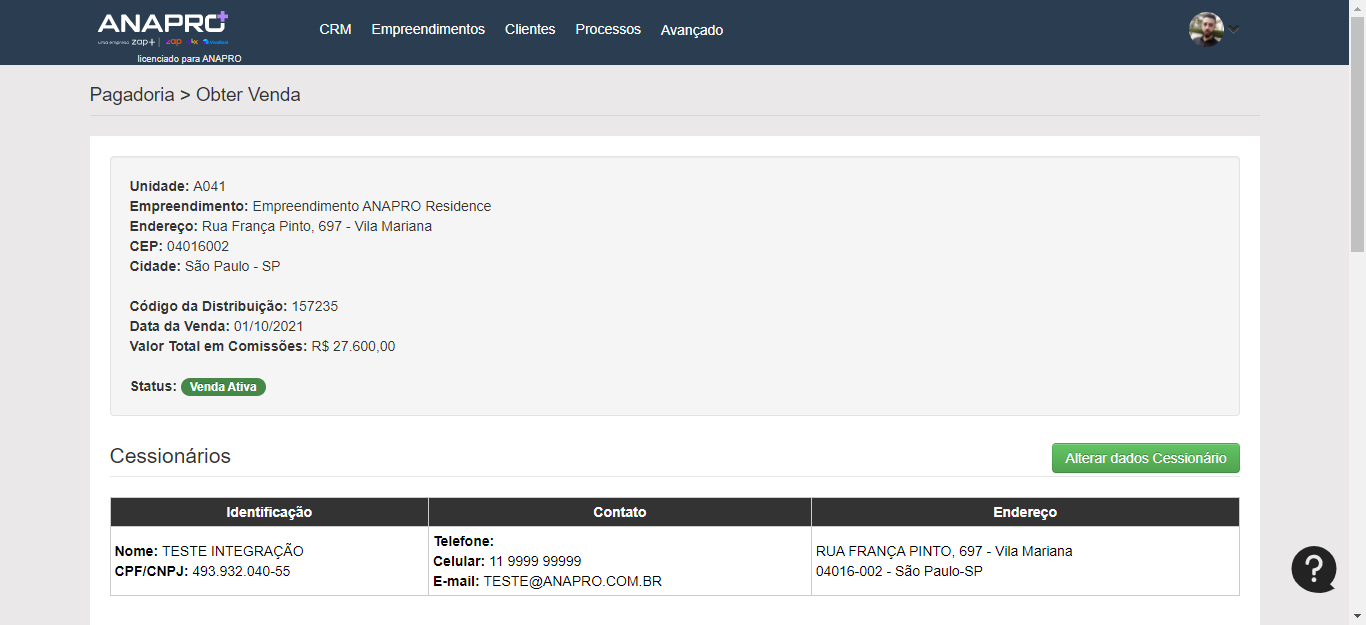 Observação: O distrato da venda cadastrada na pagadoria não irá cancelar a venda inteira no Anapro, apenas a venda (distribuição de pagamento) que foi cadastrada na pagadoria.