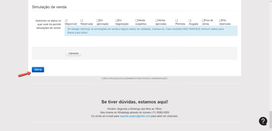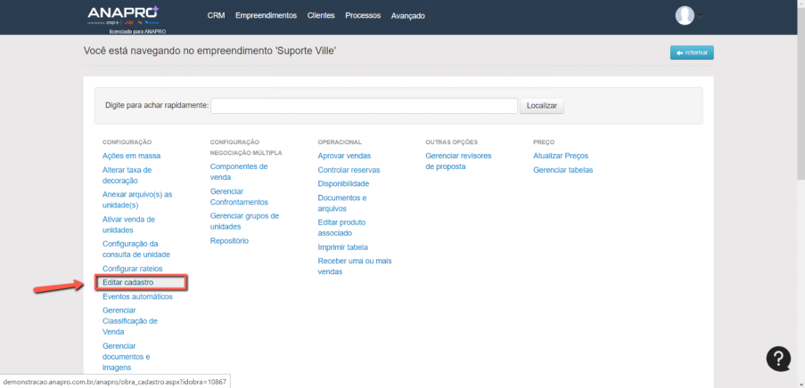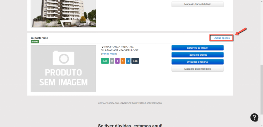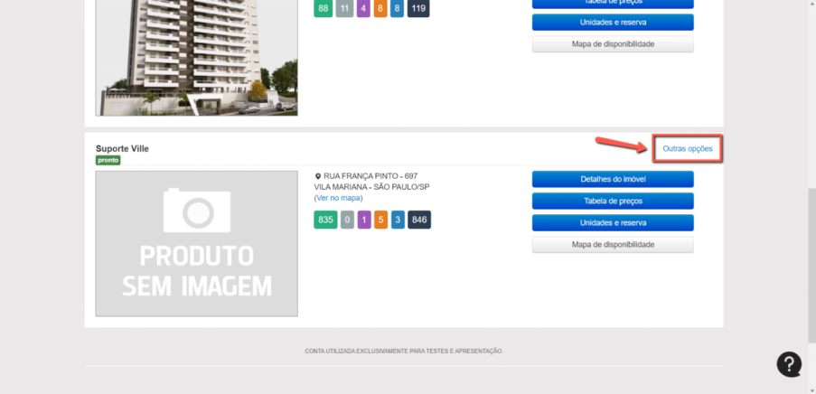 Agora vamos voltar em "Outras opções" do empreendimento.