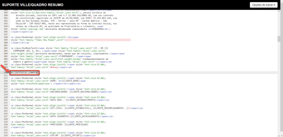 Na tela de edição de template procuramos no CTRL+F pelo campo "#CLIENTESECAO-V2#”.