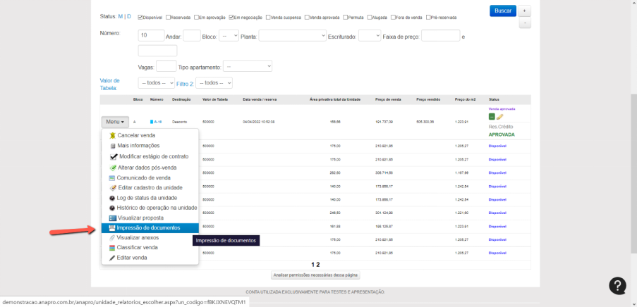 Com o template salvo, vamos até "Impressão de documentos" da unidade.