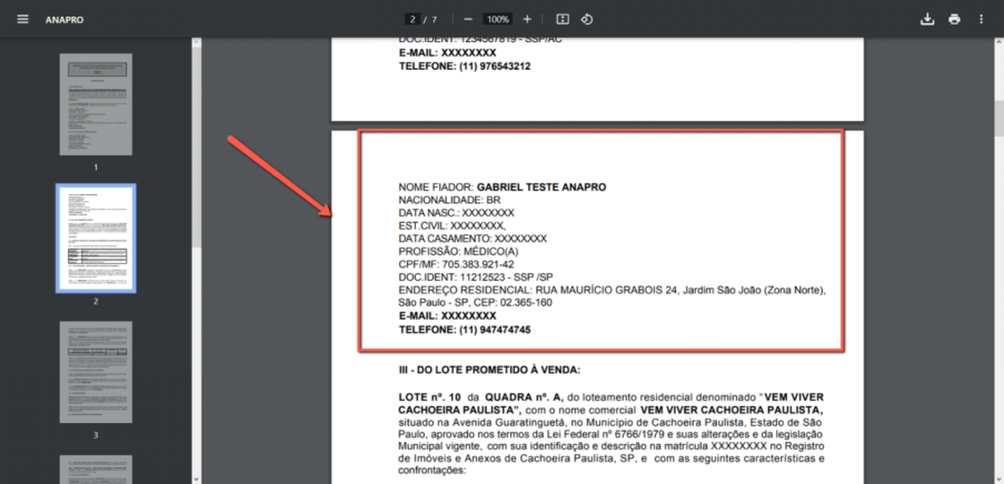 Após alterarmos a participação, voltamos a tela de "Impressão de documentos" e geramos o contrato que editamos e adicionamos o #CLIENTESECAO-V2: FIADOR#, o mesmo sairá desta forma.