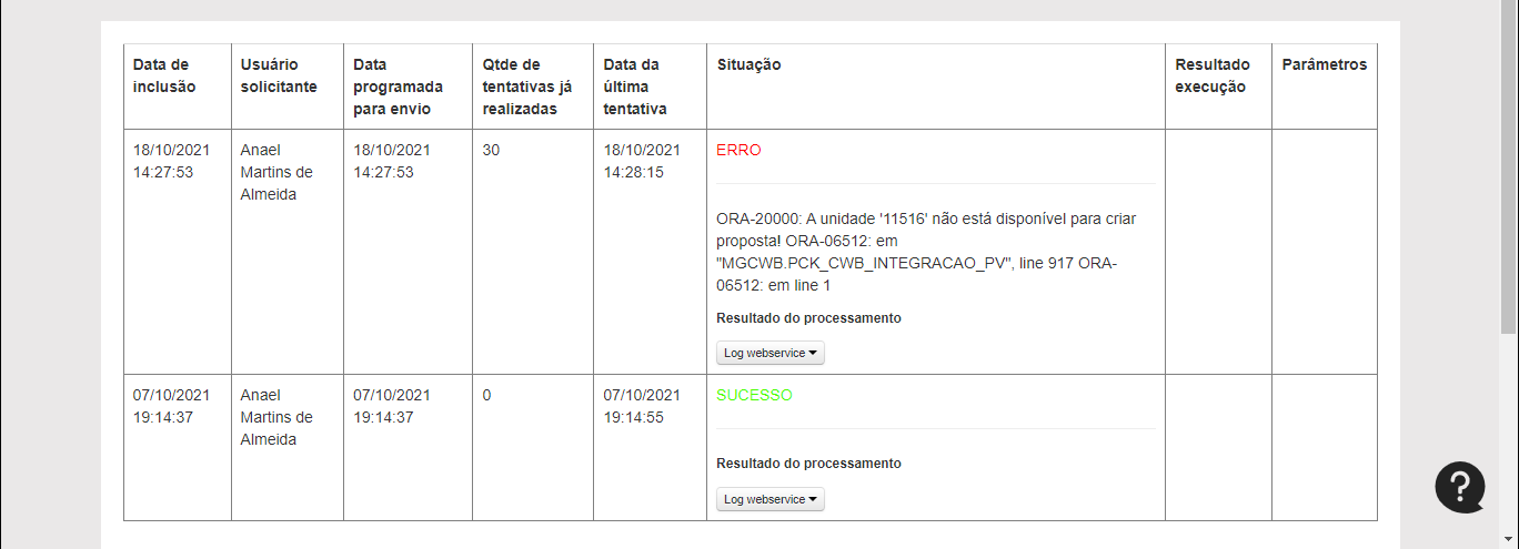 4 - Irá abrir uma tela que vai processar a exportação, quando ela concluir o processamento, o correto é aparecer "SUCESSO", porém se der algum erro ele vai gerar uma descrição do erro e um log. Segue a imagem abaixo.