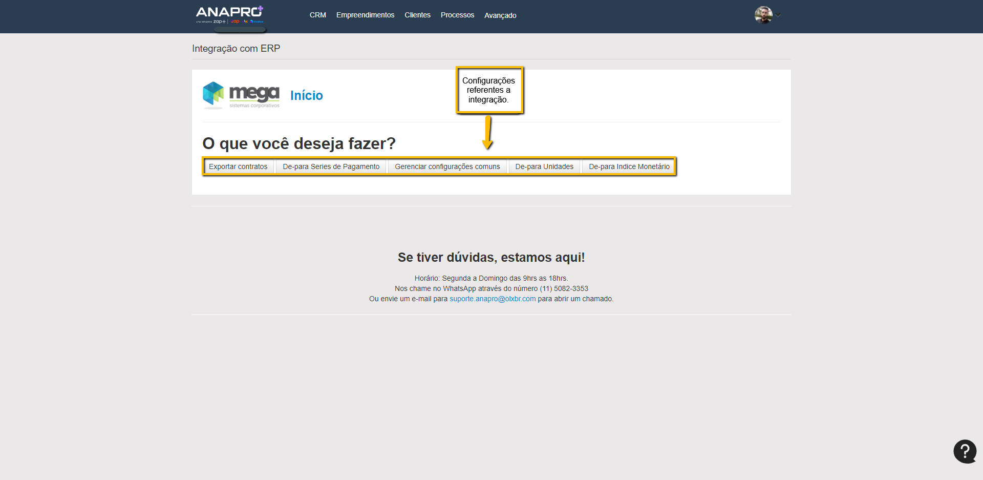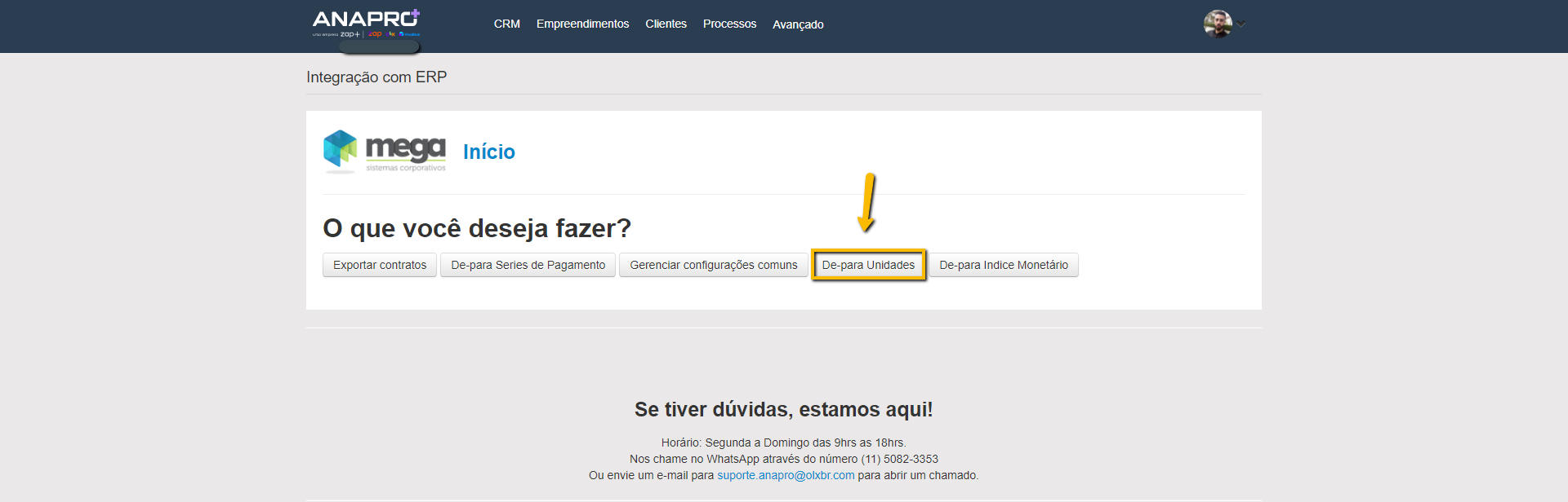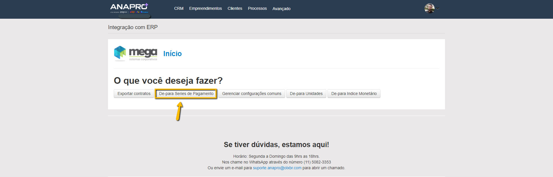 Para que os ambos os sistemas se comuniquem é necessário realizar o "De-para de Unidades", "De-para de Series de Pagamento" e o "De-para Indice Monetário", as informações para realizarmos esse "de-para" precisa ser solicitada ao cliente, o único que não precisa é o "De-para de Series de Pagamento", pois o Anapro faz a captação das séries de forma automática na base do Mega, precisando apenas fazer a referência com as séries do Anapro. Seguir passo a passo abaixo.