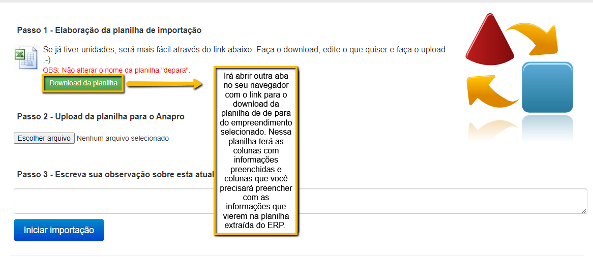 1 - Fazer o download da planilha que será preenchida para fazer o de-para de unidades.