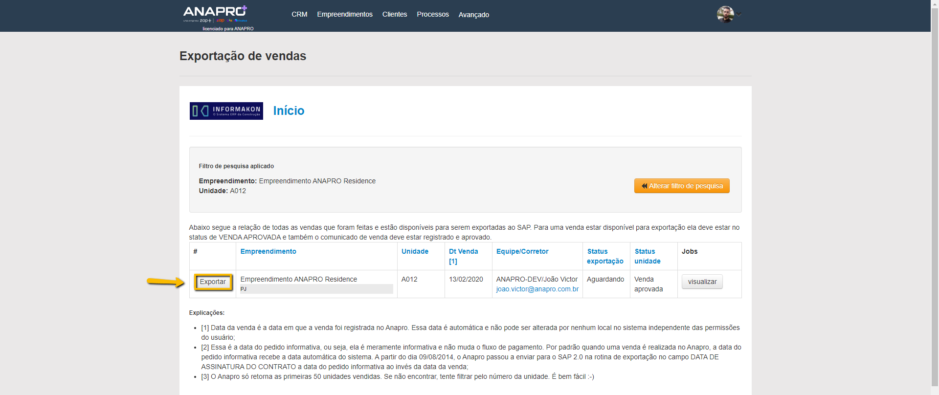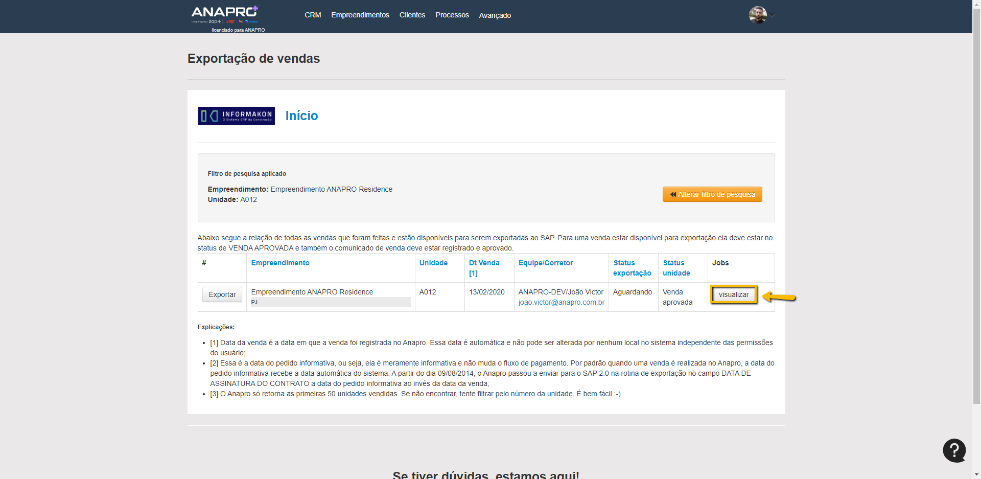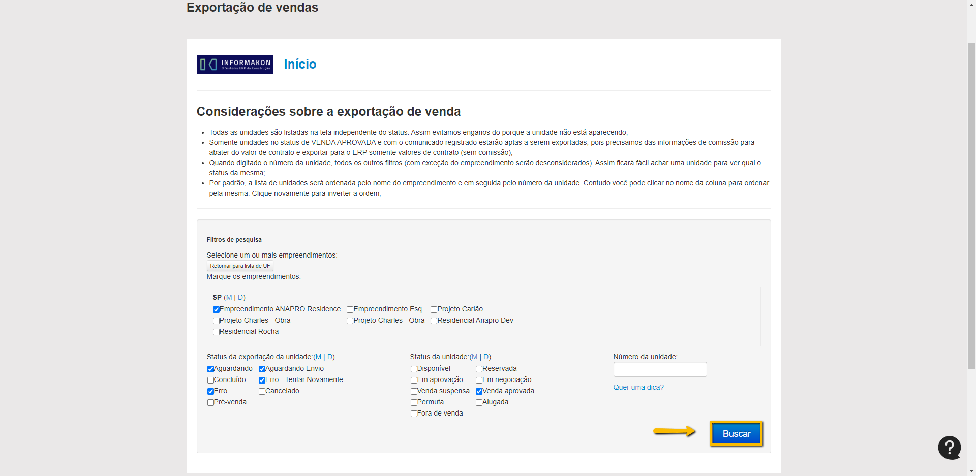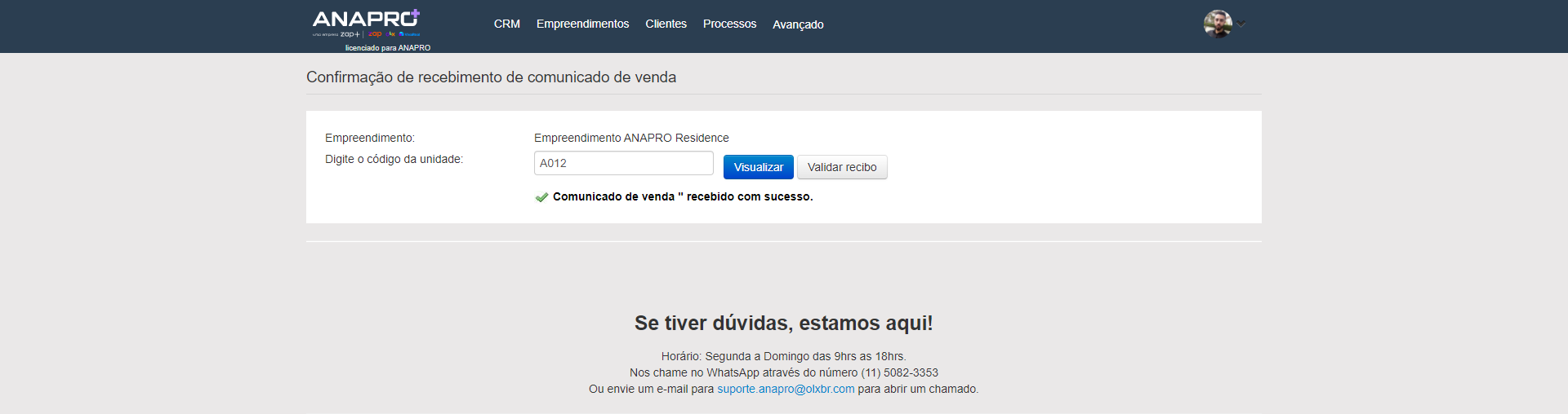 Primeiro a unidade negociada precisa estar com a venda aprovada e com o comunicado de vendas recebido.