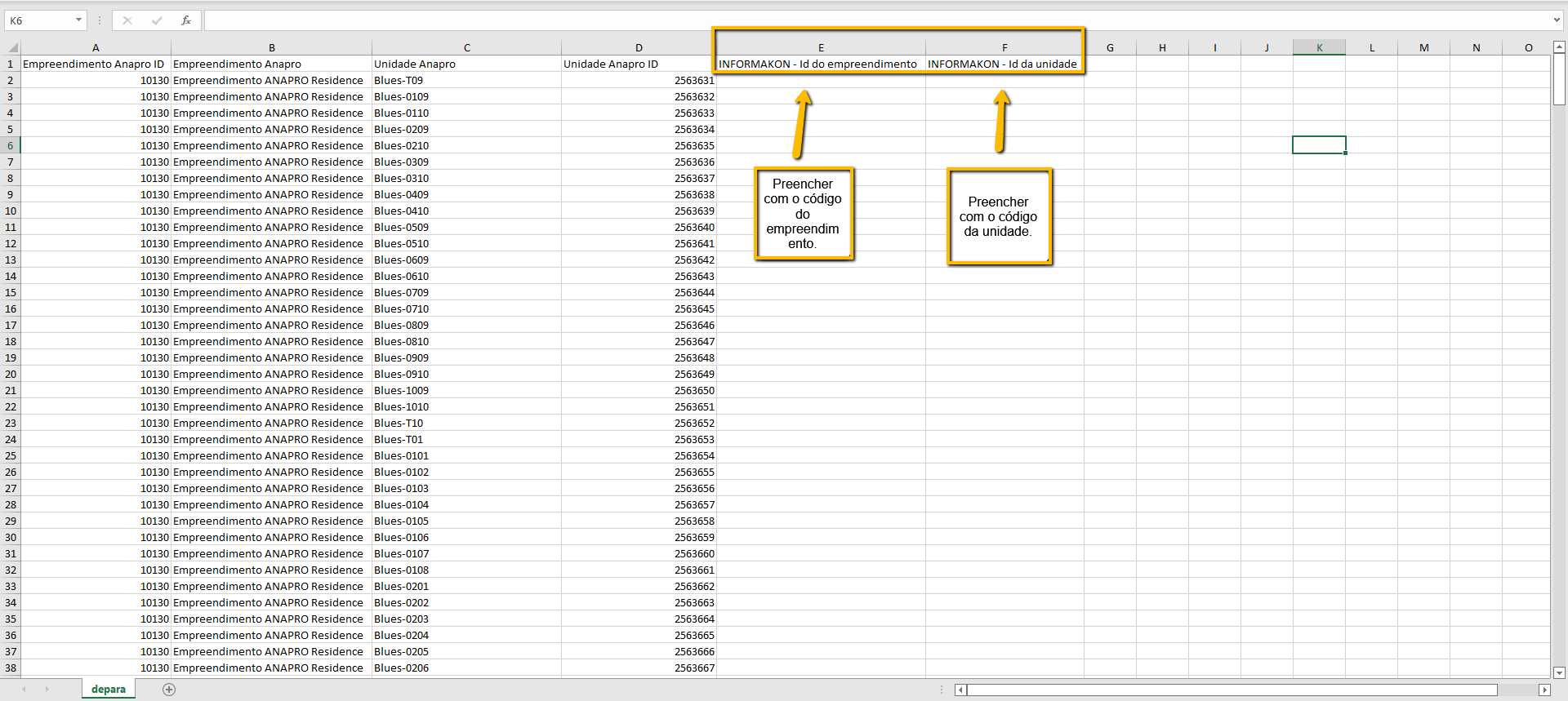 Como funciona o "de-para" de informações entre o Anapro e Informakon?