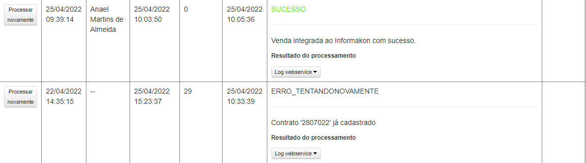 8 - Após a venda exportada com "SUCESSO", próximo passo é validar os dados dessa venda no Informakon.