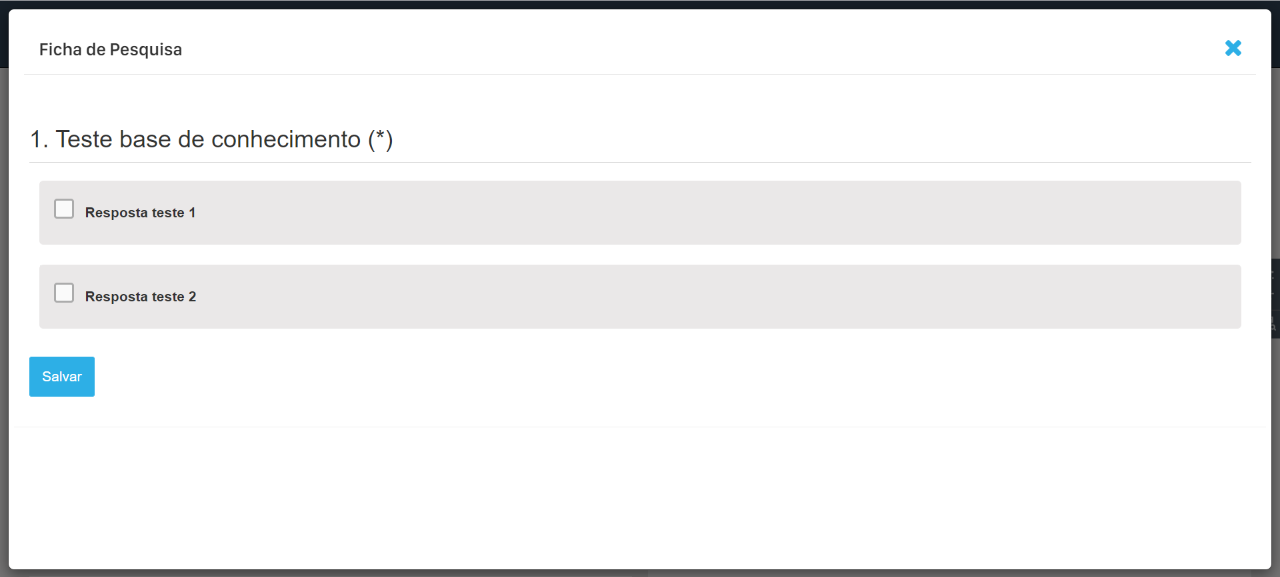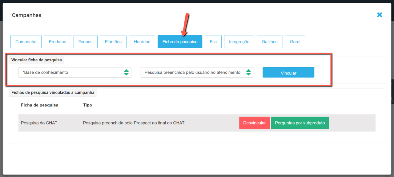 Atenção: Uma campanha não pode ter mais de uma ficha de pesquisa vinculada com o mesmo tipo.