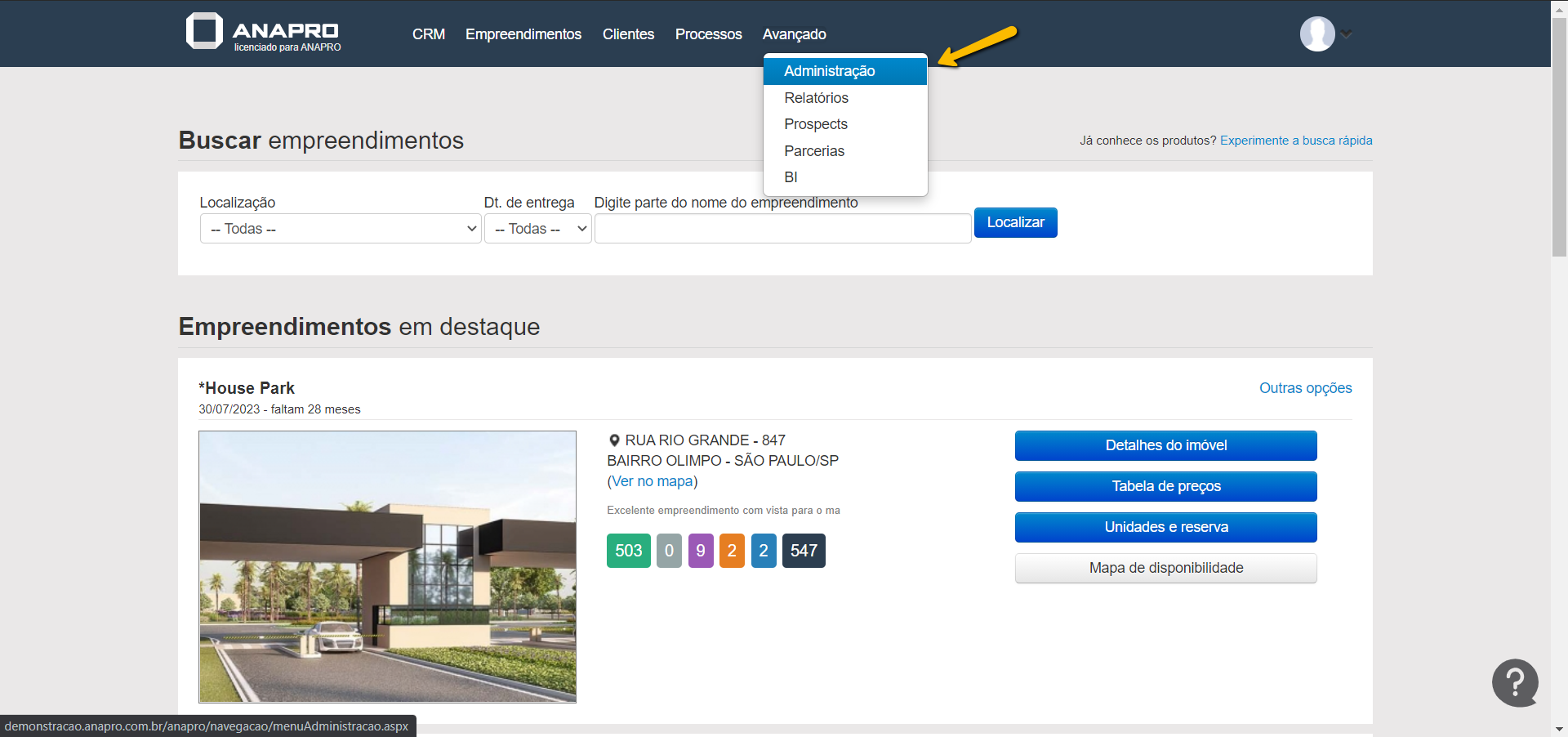 Clique em Avançado>Administração.