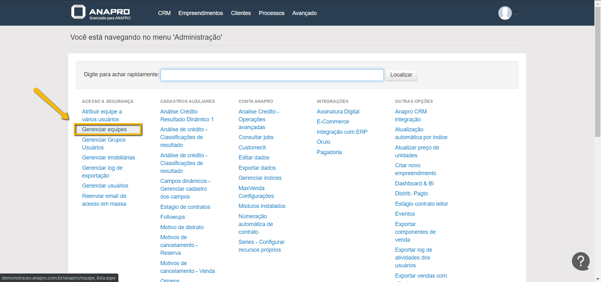 Logo em seguida iremos em "Gerenciar equipes".
