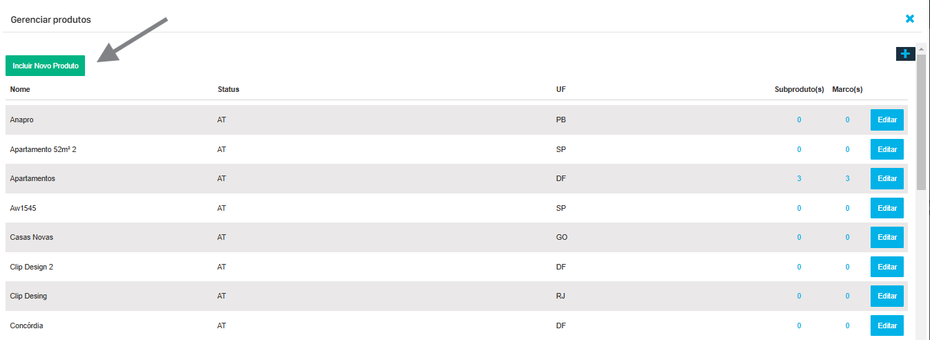 Após clicar em "Gerenciar produtos", você será direcionado para a página seguinte. Clique para adicionar um novo produto.