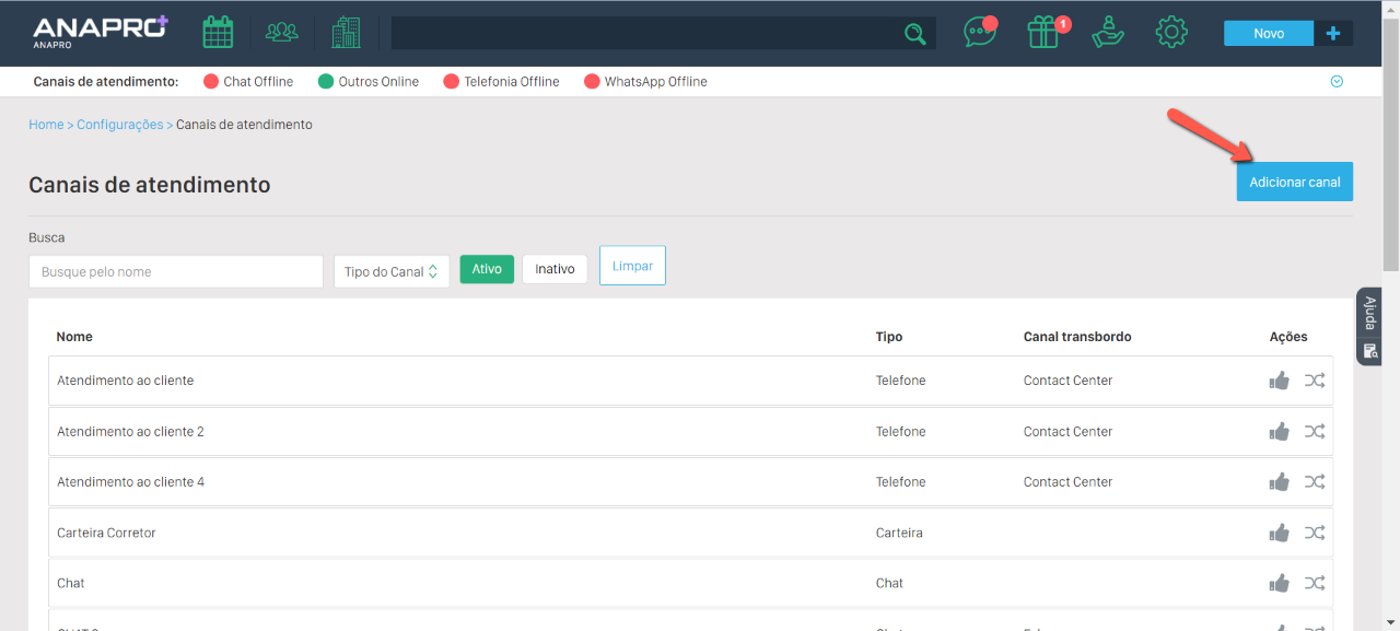 Neste artigo, iremos falar sobre como efetuar o criação de canais de atendimento.