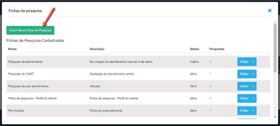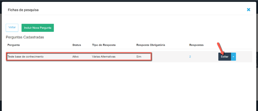 - Caso precise editar uma pergunta, resposta ou descrição, você pode fazer isso em qualquer tela de cadastro (ficha, perguntas ou respostas). Clique no botão de editar correspondente e ajuste as informações conforme necessário.