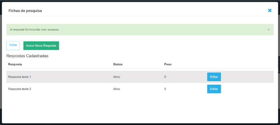 Ao salvar, você será redirecionado para a listagem de respostas cadastradas.