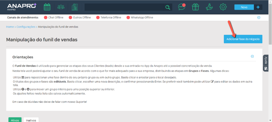 Neste artigo, iremos abordar como adicionar fases ao funil de vendas.