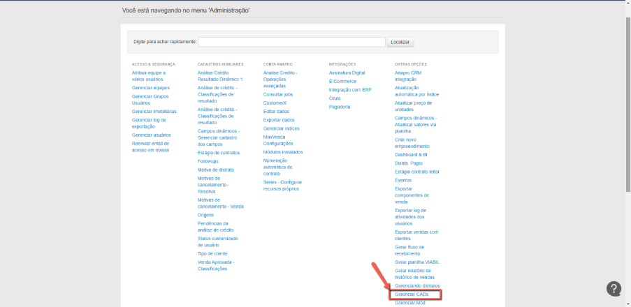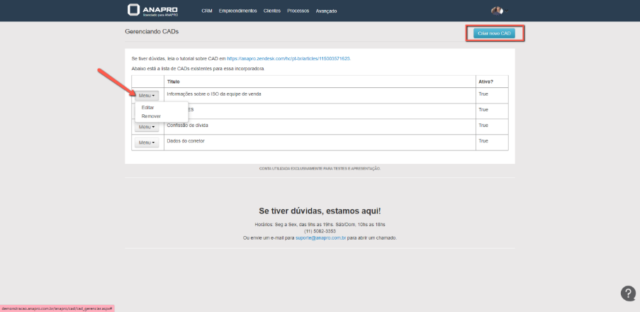 Seremos direcionados a tela onde será possível criar novos CADs, editar os já existentes, ou remover.