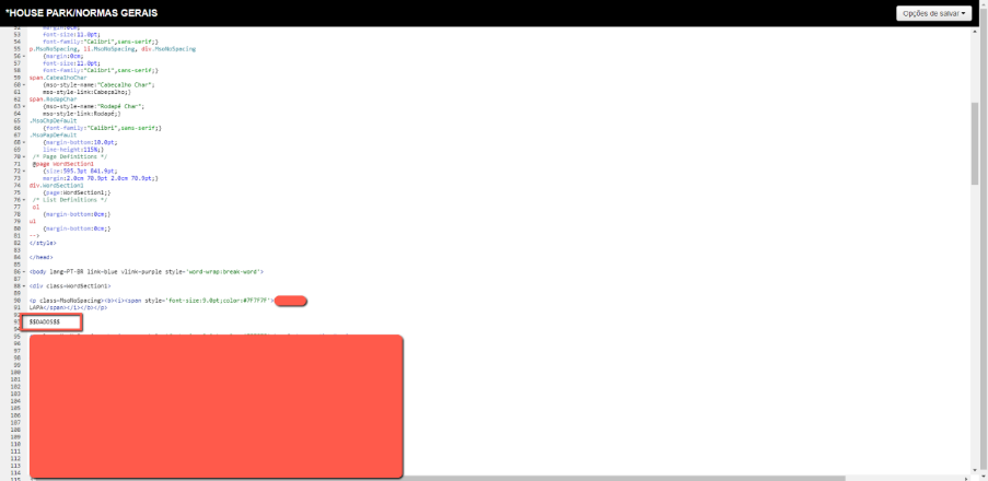 *Para que funcione é importante a variável estar exatamente igual à que foi definida. Se maiuscula, no código também deve ser, se minúscula, no código também deve ser e assim por diante. Depois de inserir, clique em "opções de salvar", no canto direito superior da tela e selecione a opção de "salvar saindo".